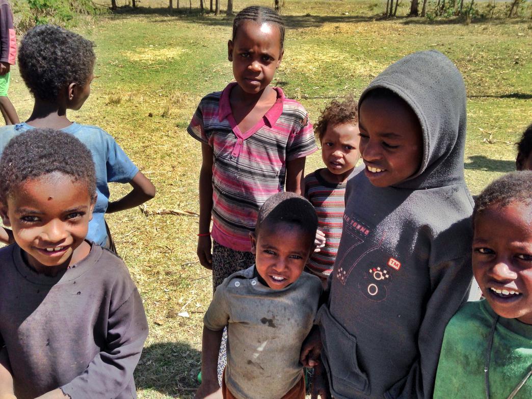 We stopped to take a photo of one of these hand-painted huts and were soon surrounded by locals. Just moments before, it appeared there wasn’t a soul in sight, just vast landscapes sprinkled here and there with a few isolated huts. That’s Ethiopia for you; you’re never alone. 🙂