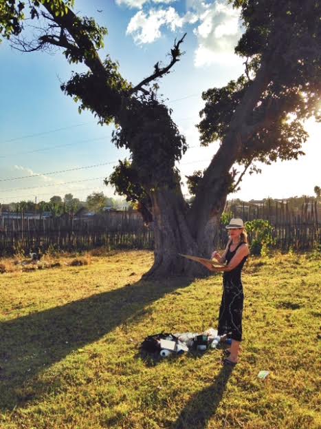 When we arrived in Hosanna, a four-hour drive from the capital, we ate a speedy lunch so we could get out on location and paint. For two glorious hours, we sat in this quiet park and painted, breathed in the beauty before us and enjoyed the process of creating. We were only barely discovered, with an occasional “hello” hollered out from the distance. Our main audience was grazing goats, thinking my painting a possible meal.