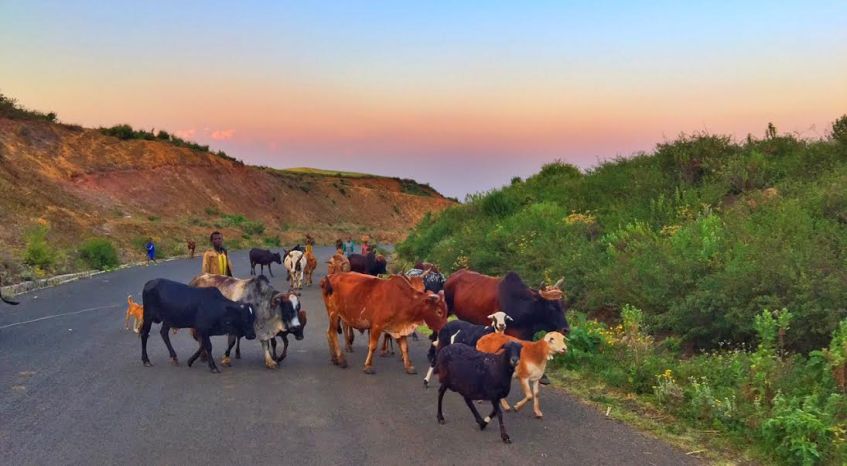 eoiiblog-day9-pic2 Published February 7, 2016 at 1095 × 602 in An Ethiopian Diary: Day 9 A very typical scene in Ethiopia. Sunset means time to get back home with your cattle!